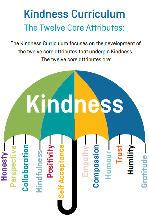 The Kindness Curriculum focuses on the development of core attributes that underpin Kindness namely: Collaboration, Compassion, Empathy, Gratitude, Honesty, Humility, Humour, Mindfulness meditation, Perspective, Positivity, Self- Acceptance and Trust. All learning activities can be easily integrated into daily teaching routines and easily adaptable to meet class and school needs and priorities. They are also suitable as standalone activities to explore, investigate and address specific problems that arise in the lives of young people.